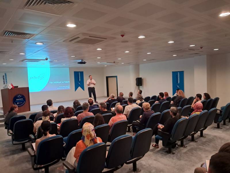 Fikri ve sınai haklar, patent, faydalı model, tasarım gibi konu başlıklarının açıklandığı “Fikri ve Sınai Mülkiyet Hakları Bilgilendirme Etkinliği”, 6 Temmuz 2023 Perşembe günü Sakarya Teknokent Konferans Salonu’nda gerçekleştirildi.