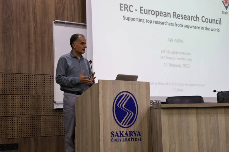 Sakarya Üniversitesi Rektörü Prof. Dr. Hamza Al’ın da katılımıyla gerçekleştirilen ERC Programı Bilgilendirme Etkinliği kapsamında, TÜBİTAK Ulusal İrtibat Noktası Aslı Vural, proje başvuru ve yürütme sürecine ilişkin bilgileri paylaştı.